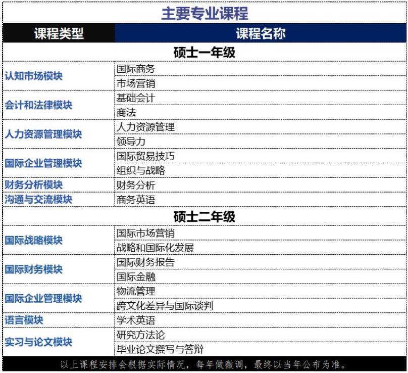 1)本专业2年开设约18门学分课程。根据学员情况,酌情开设若干素养课。外方课程配备中文辅导,作业、考试、讨论、毕业论文及答辩均使用英语;