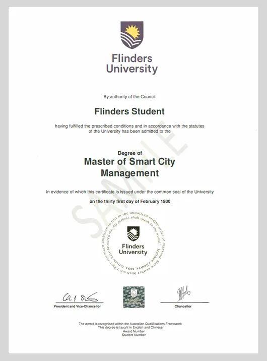学员按规定修满学分,且成绩合格,将被授予澳大利亚弗林德斯大学智慧城市管理硕士学位证书。所获得的硕士学位可在中国教育部留学服务中心进行学历学位认证。